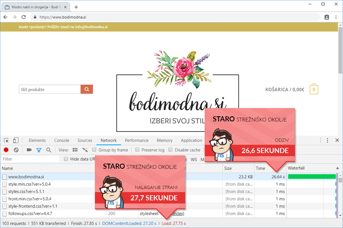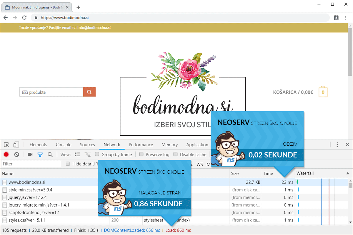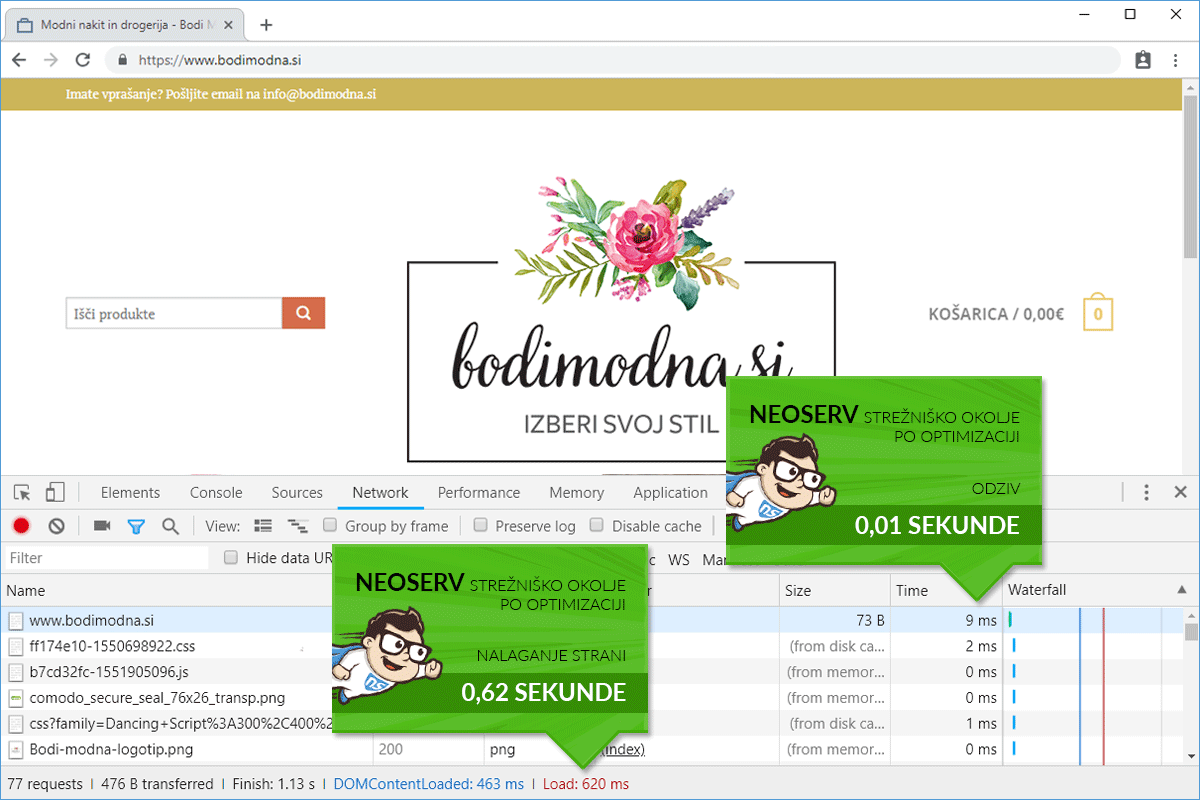 The team behind the Bodimodna.si project decided to transfer their website to NEOSERV due to the slow performance of their online store. Although the difference in performance speed is usually noticeable immediately after transferring to our server, this time everything did not go so smoothly.
