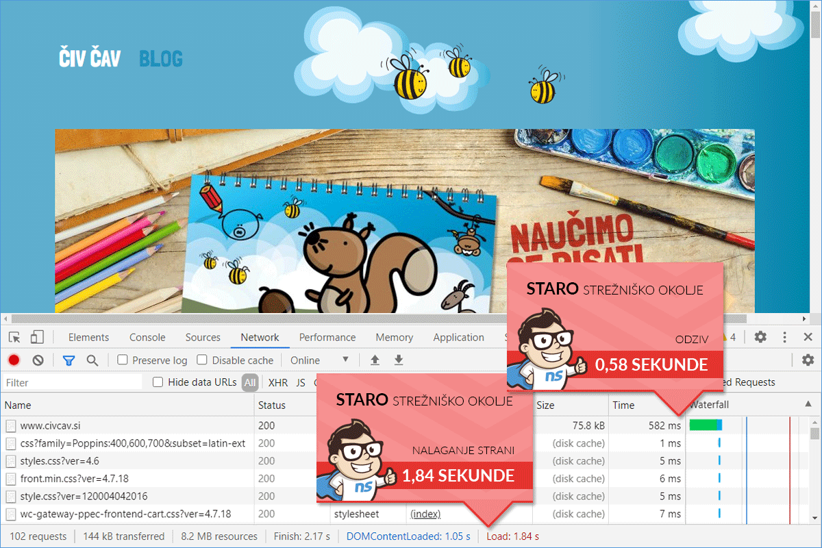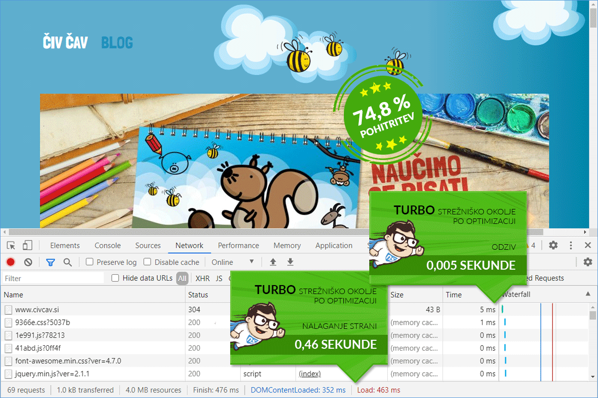 The loading speed of the Civcav.si online store has improved by 74.84%.