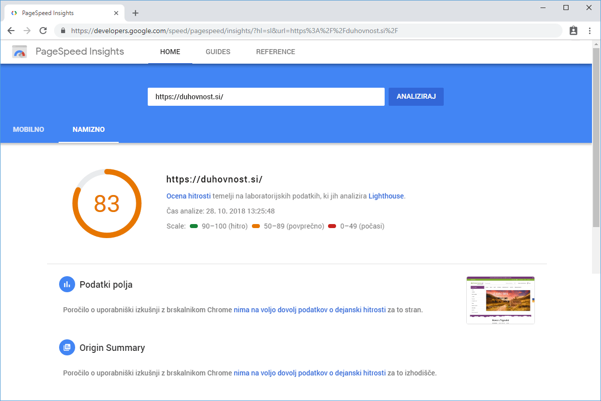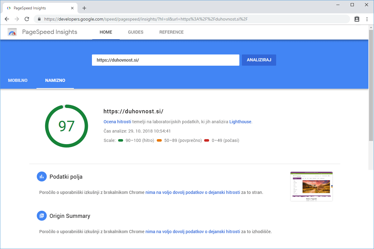 We have accelerated the loading speed of the Duhovnost.si web store by 54.90%.