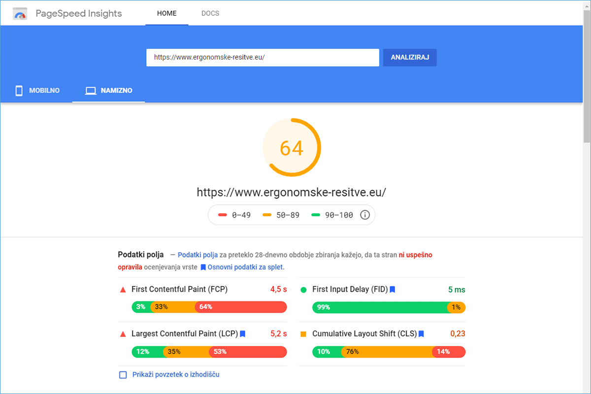 On the server of one of the larger and more recognizable hosting providers in Slovenia, the website www.ergonomske-resitve.eu was opening in more than 4 seconds. Since the store owner was aware that loading speed also affects the success of online sales, he checked online how to speed up the store. He was attracted by our offer of TURBO packages, which operate on highly responsive LiteSpeed web servers, so he soon decided to test the speed of operation.