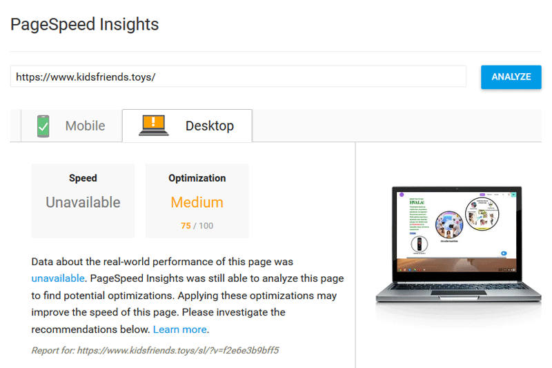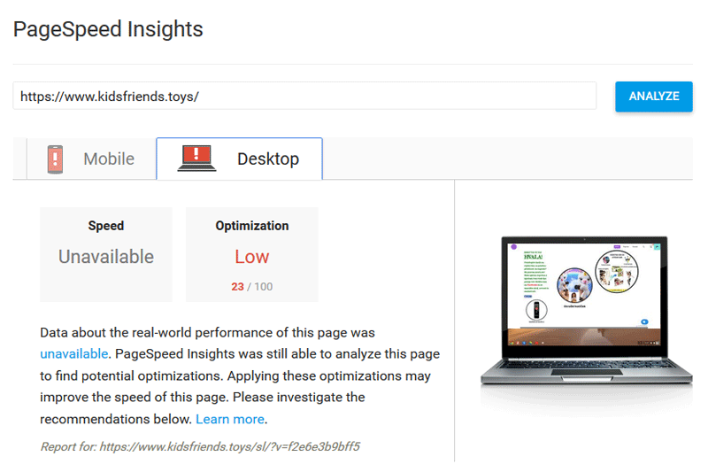 The loading speed of the Kidsfriends.toys online store has improved by 70.51%.