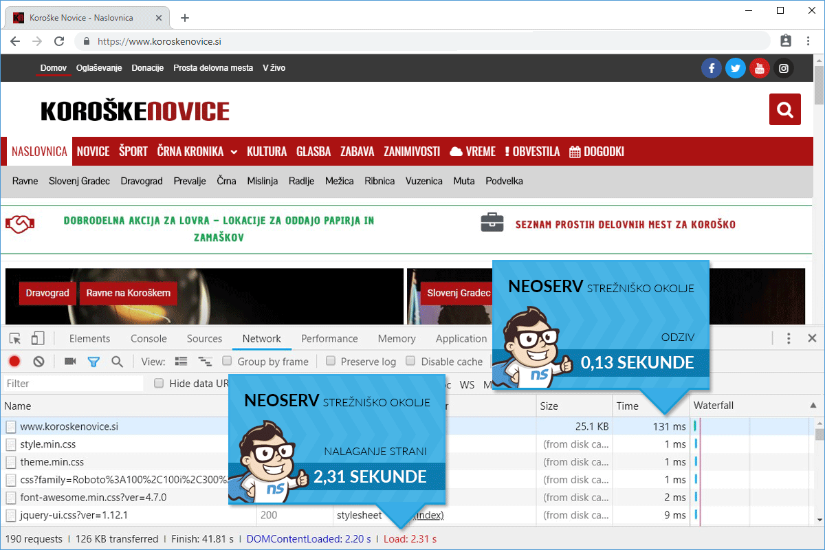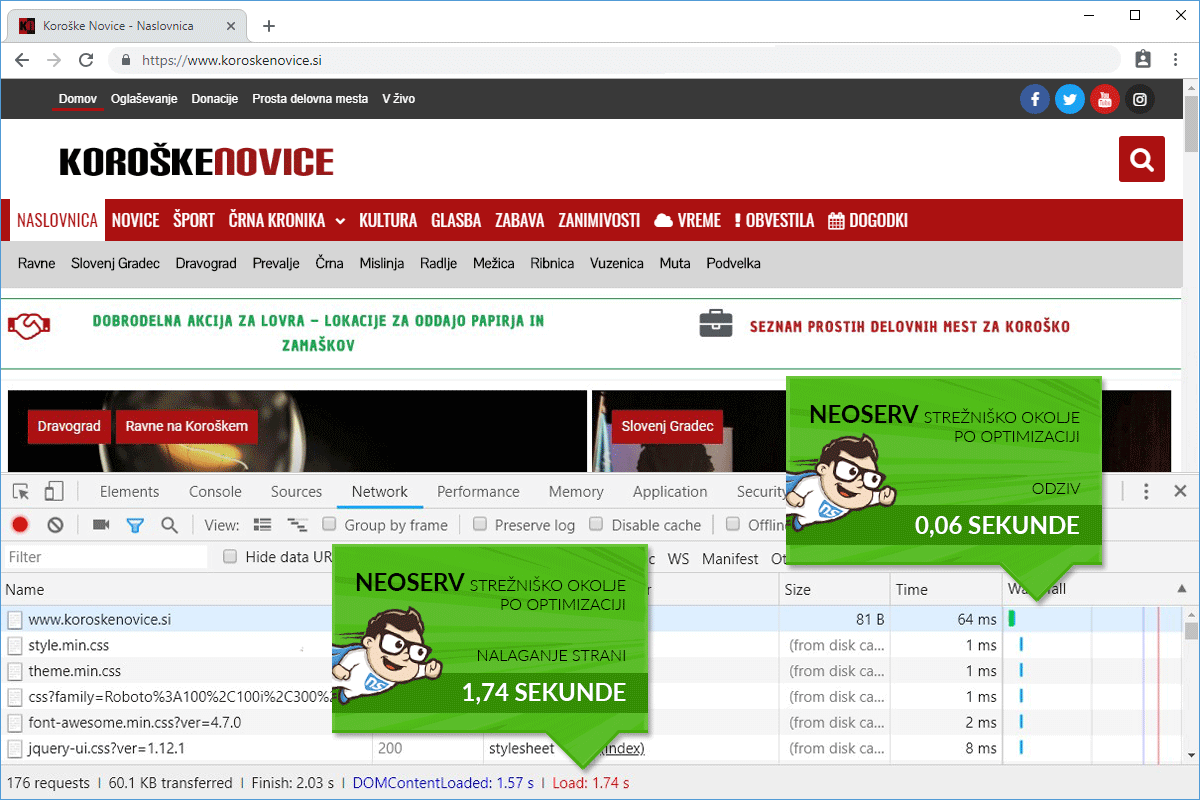 This time we did not transfer a company presentation page, a blog, or an online store, but a web portal. The owners of the media Koroskenovice.si, who regularly publish articles related to the Koroška region, decided to transfer from the old provider to the NEOSERV server.