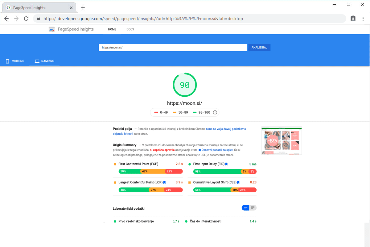 The loading speed of the Moon.si online store has improved by 80.28%.