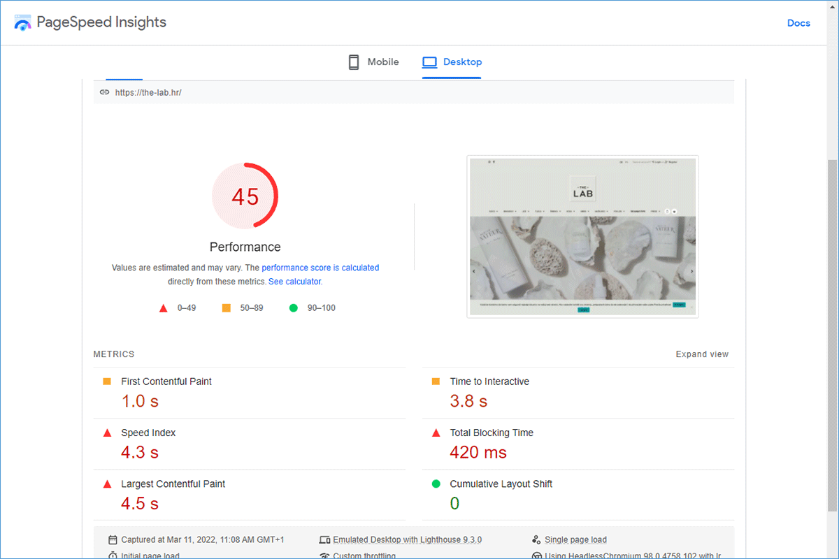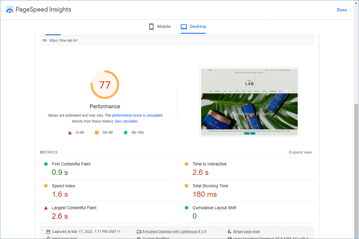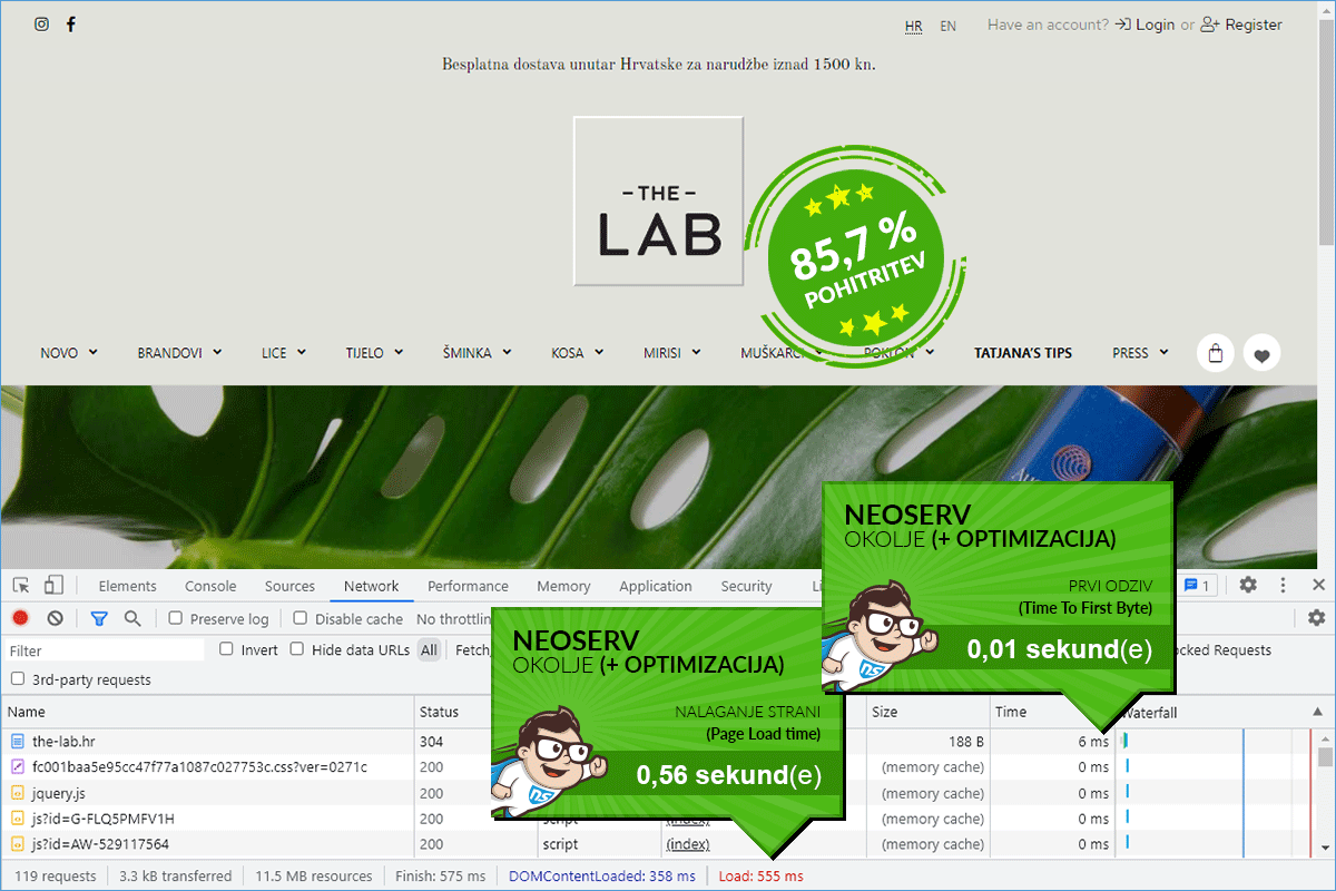 The loading speed of the web store The-Lab.hr improved by 85.66%.