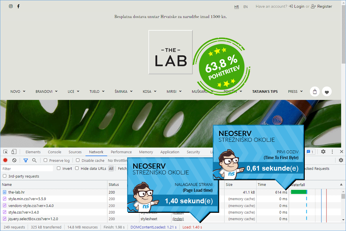 Before the transfer to our Turbo environment, the web store THE LAB was hosted on a server of one of the more well-known foreign cloud hosting providers – Contabo. This is a German company, established in 2003, which today has its virtual servers spread around the world. The company employs more than 100 people and boasts more than 130,000 subscribers in as many as 190 countries. Despite the remarkable success of the mentioned company, the owners of the web store The-Lab.hr decided to try out our Turbo hosting.