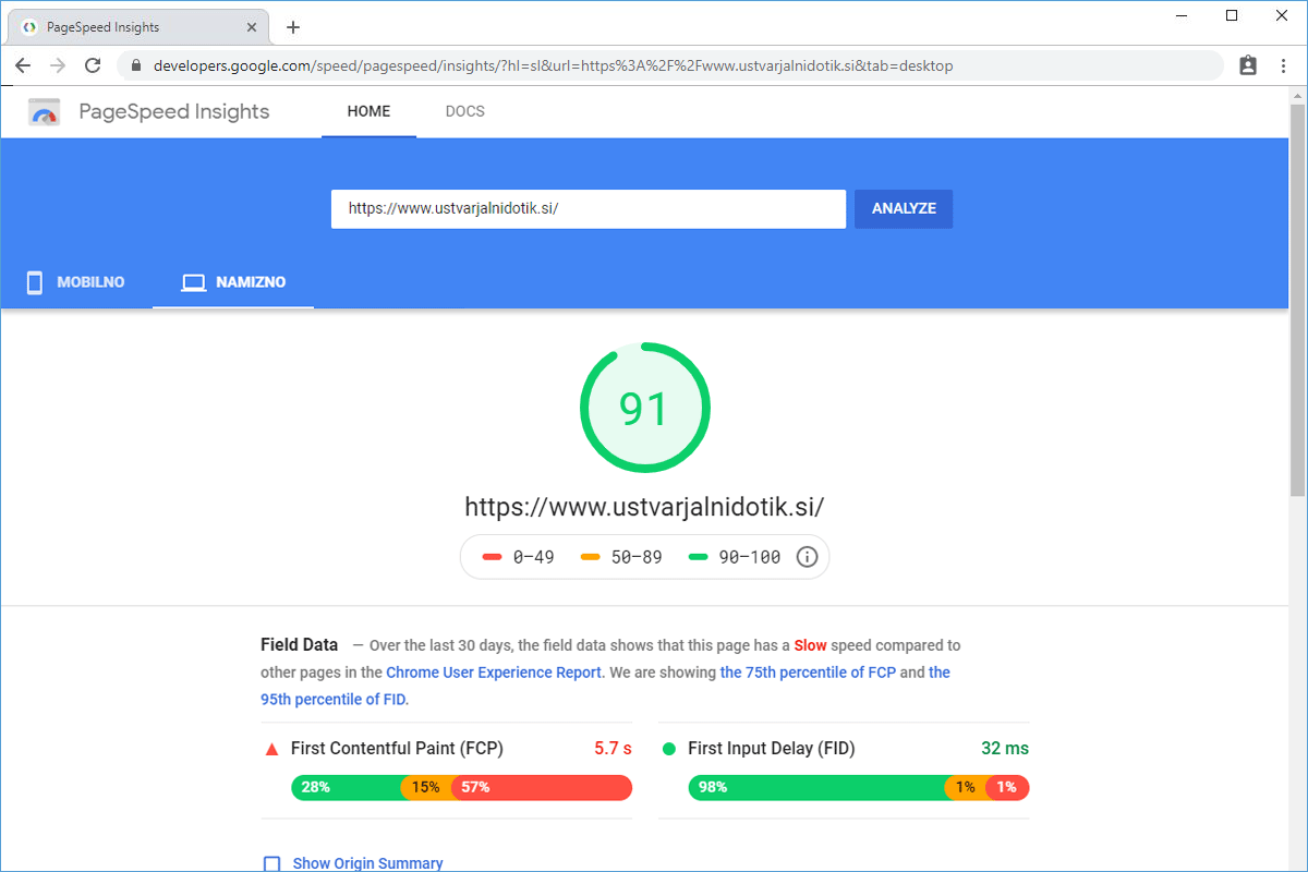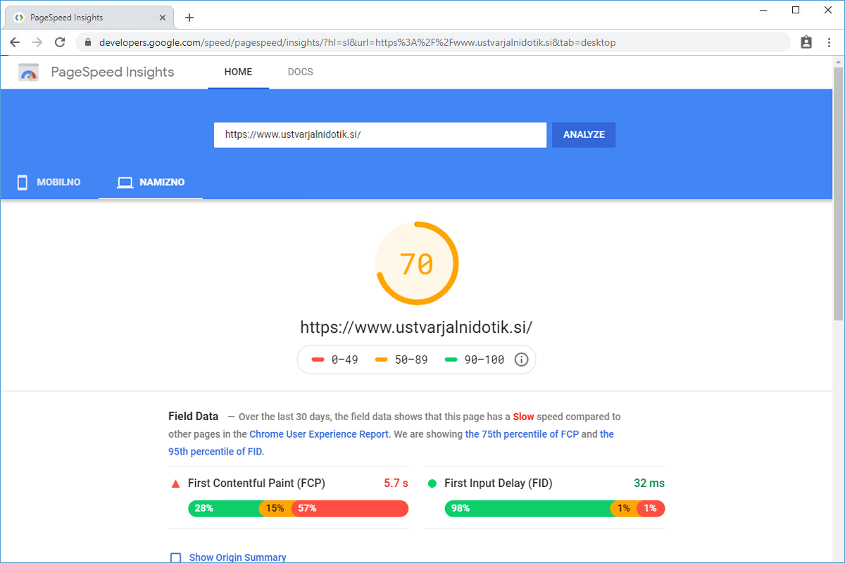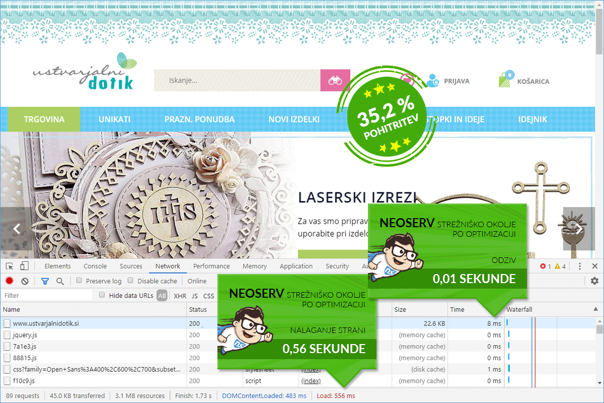 The loading speed of the Ustvarjalnidotik.si web store improved by 35.20%.