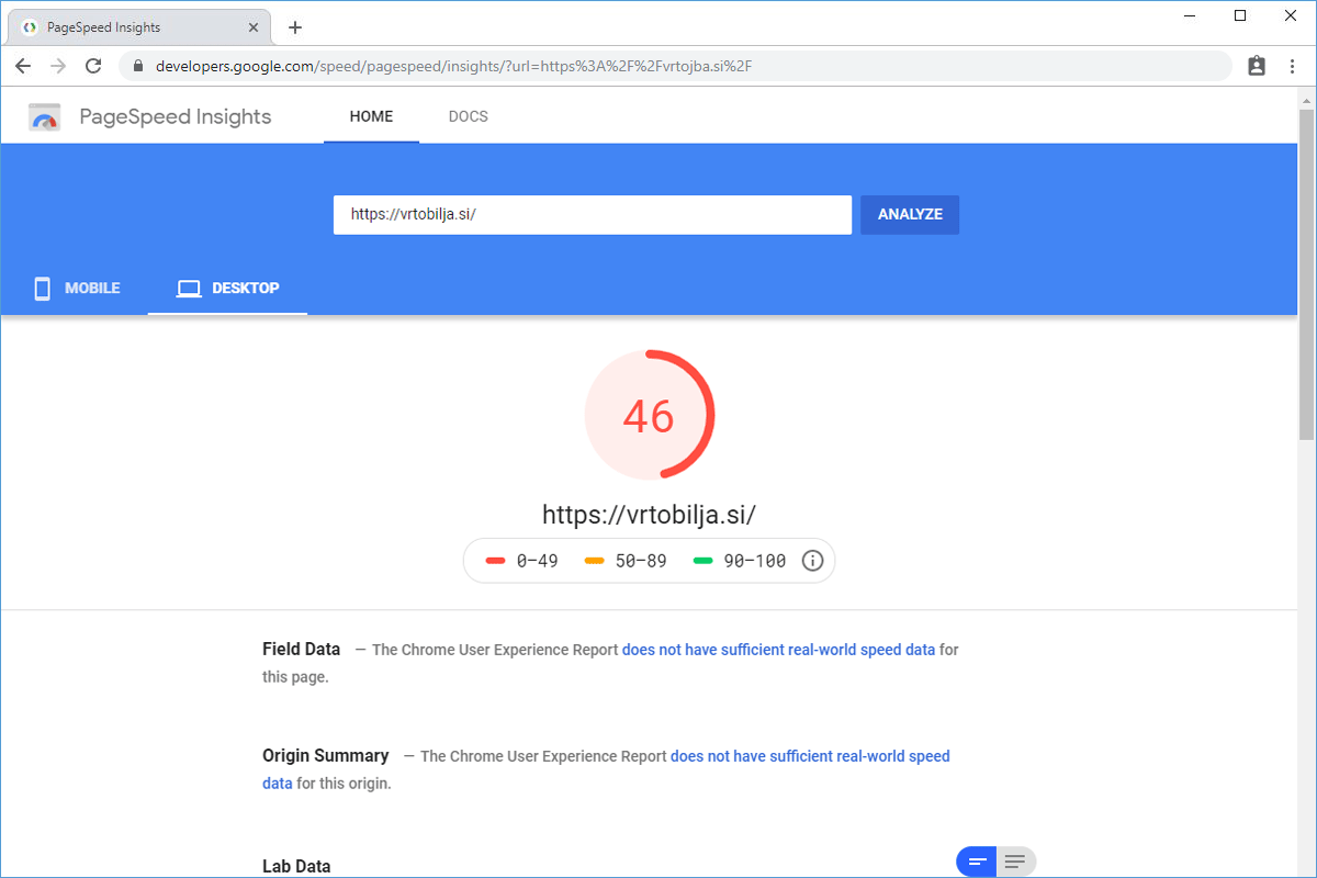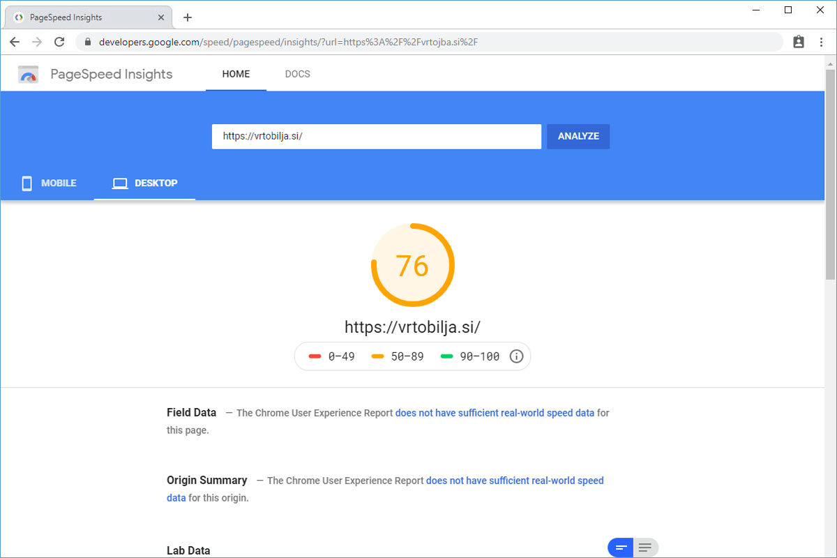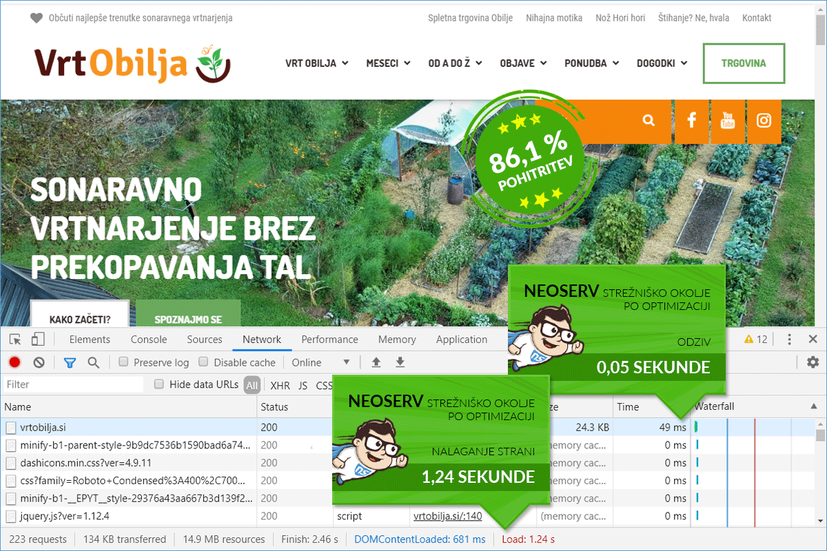 The loading speed of the web portal Vrtobilja.si improved by 86.07%.